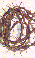 on him and then twisted together a crown of thorns and set it on his head. They put a staff in his right hand and knelt in front of him and mocked him. "Hail, king of the Jews!" they said. They spit on him, and took the staff and struck him on the head again and again. Jesus was then beaten by the Roman soldiers. In mockery, they dressed Him in what was probably the cloak of a Roman officer, which was colored dark purple or scarlet.(Amplified Bible) He also wore the crown of thorns. Unlike the traditional crown which is depicted by an open ring, the actual crown of thorns may have covered the entire scalp.(Lumpkin) The thorns may have been 1 to 2 inches long. The gospels state that the Roman soldiers continued to beat Jesus on the head. The blows would drive the thorns into the scalp (one of the most vascular areas of the body) and forehead, causing severe bleeding.