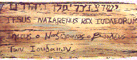 The procedure of crucifixion may be summarized as follows. The patibulum was put on the ground and the victim laid upon it. Nails, about 7 inches long and with a diameter of 1 cm ( roughly 3/8 of an inch) were driven in the wrists. The points would go into the vicinity of the median nerve, causing shocks of pain to radiate through the arms. It was possible to place the nails between the bones so that no fractures (or broken bones) occurred. Studies have shown that nails were probably driven through the small bones of the wrist, since nails in the palms of the hand would not support the weight of a body. In ancient terminology, the wrist was considered to be part of the hand. (Davis) Standing at the crucifixion sites would be upright posts, called stipes, standing about 7 feet high.(Edwards) In the center of the stipes was a crude seat, called a sedile or sedulum, which served a support for the victim. The patibulum was then lifted on to the stipes. The feet were then nailed to the stipes. To allow for this, the knees had to be bent and rotated laterally, being left in a very uncomfortable position. The titulus was hung above the victim's head.