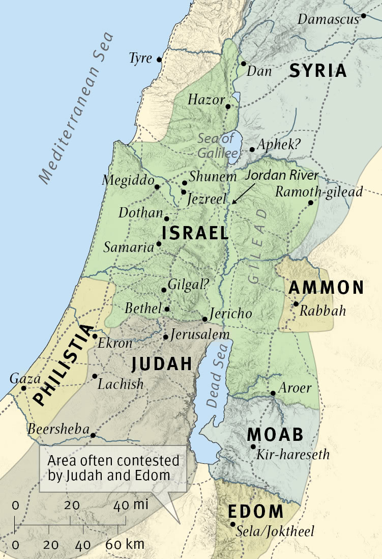 The book of 2 Kings tells of events in Israel and Judah from the death of Ahab to the exile of Israel and Judah. The story involves Israel, Judah, Syria, Ammon, Moab, Edom, and Philistia, as well as Egypt, Assyria, Babylonia, and other kingdoms far beyond Israel's borders.