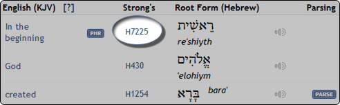 3. This will bring you the Lexicon/Concordance for the scripture selected with various Hebrew or Greek versions of the text. It is made up of a listing of the words used in the verse followed by the Strong's reference number corresponding to each along with the original Hebrew or Greek for that portion of Scripture.